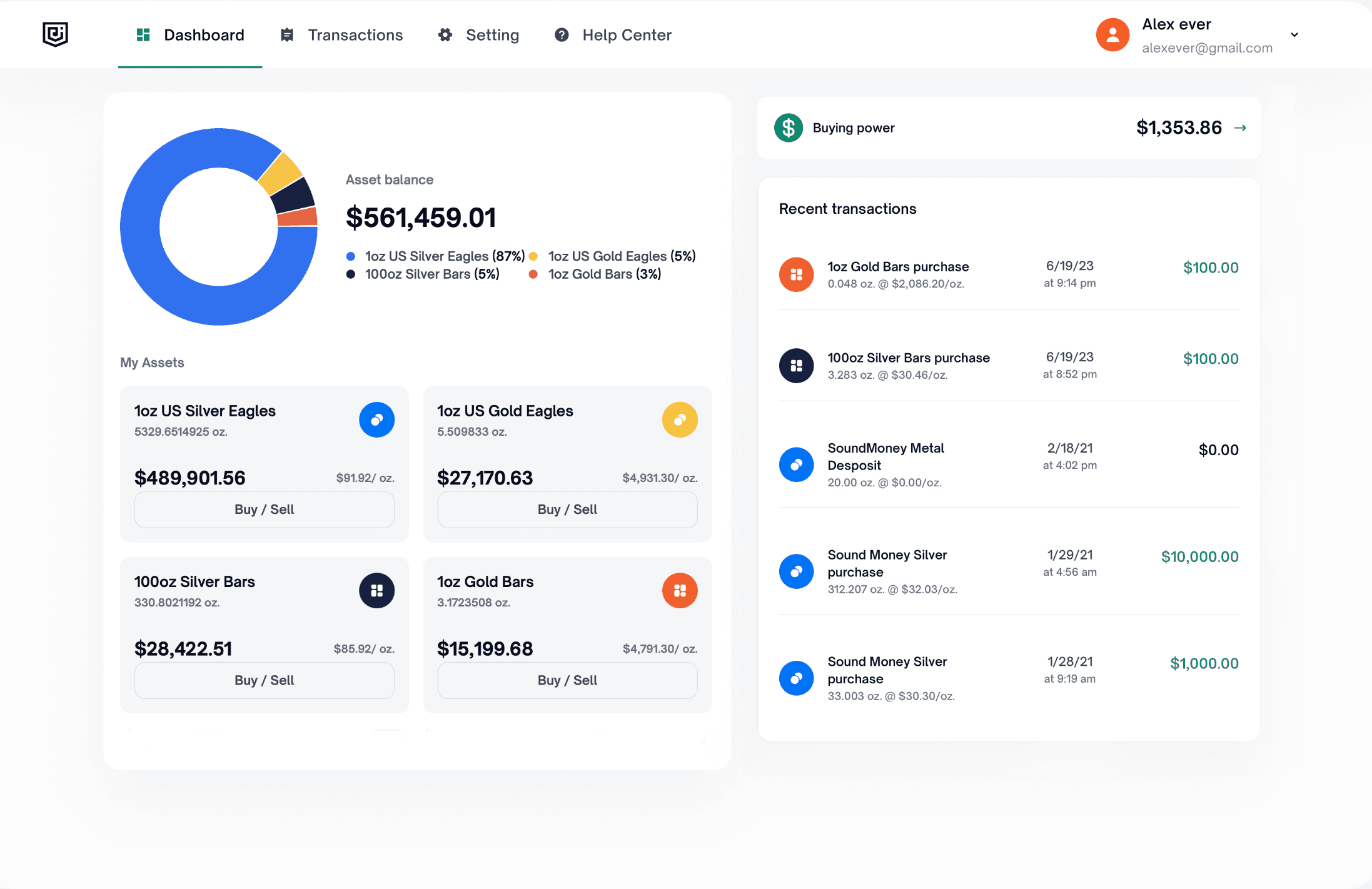 ¡Me encanta poder convertir cualquier cantidad de dinero fiduciario en cantidades graduales de metales preciosos con solo hacer clic en un botón! ¡Esto es revolucionario!